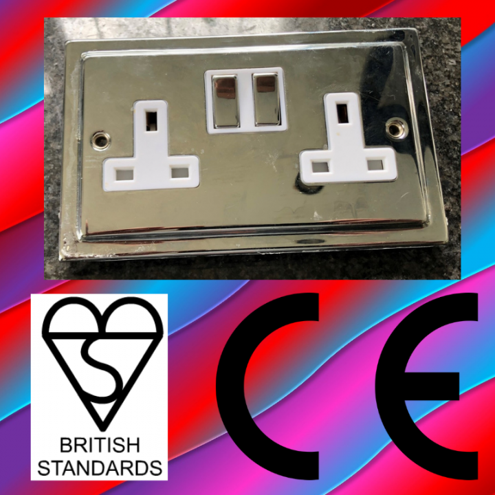 Always check that any sockets and switches you buy have the BS standard or the CE marking to show that they have been designed and tested to a safe standard that proves they are fit for installation in your home